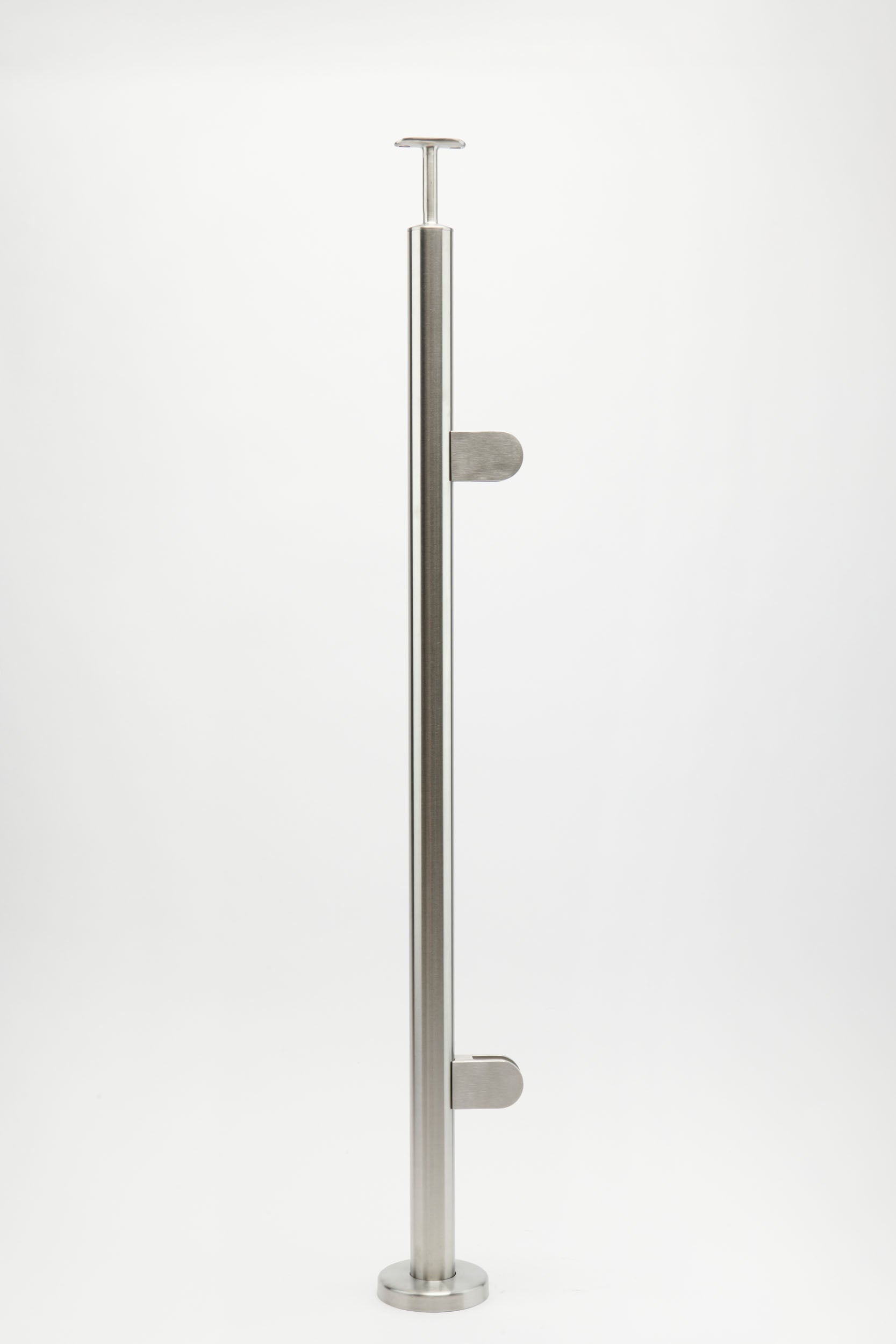 \nFeaturing a chrome finish and standing at 1100mm tall, these 42mm handrail end posts come with a matching base plate and cover, 2 x 10mm middle glass clamps (complete with rubber covers), and a 42mm tube saddle to support a 42mm handrail.