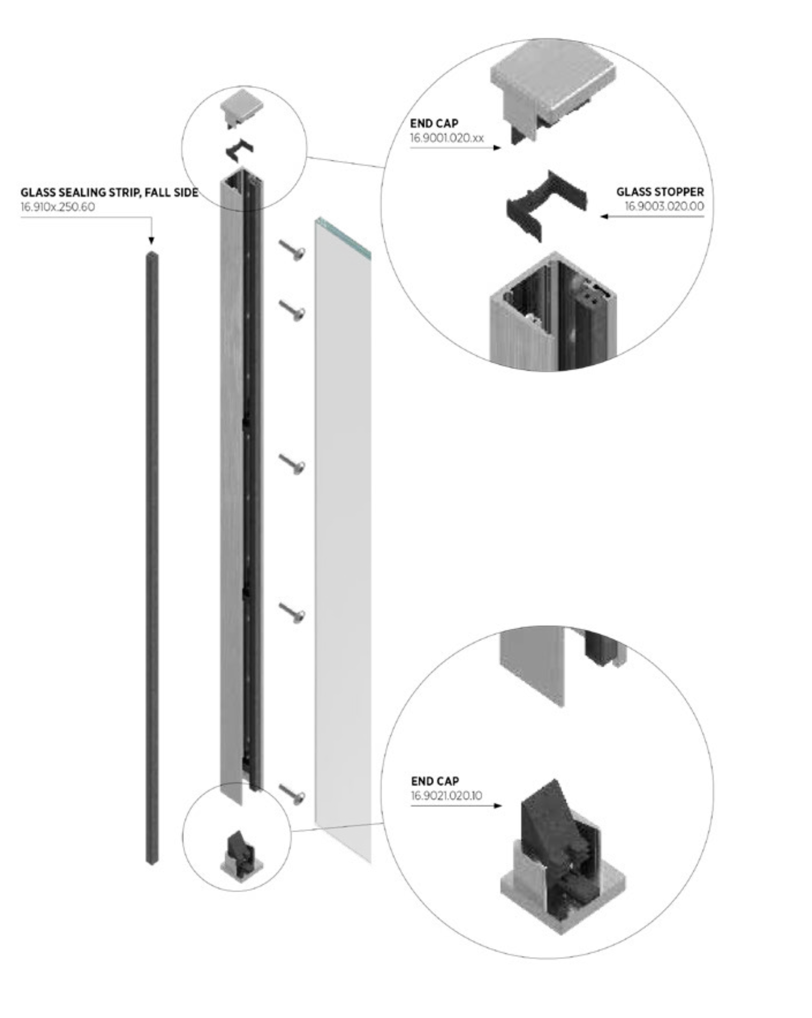 The Side Fixed Skyforce system is designed to fit 1100mm tall glass with a thickness of 10MM TO 11MM (OTHER GLASS THICKNESSES AVAILABLE), and can be customized to fit your specific sizing and colour needs with a small surcharge. Choose from a range of RAL/BS colours, with a matte finish available for most colours and a gloss finish available in black and silver. Textured finishes are also available for select colours. If you plan to powder coat your system, we recommend you opt for a mill finished skyforce. In its natural anodised finish, the frame is light grey in colour.